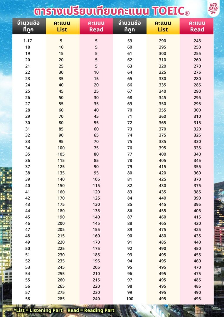 ตารางเปรียบเทียบคะแนน TOEIC® โดยรวม