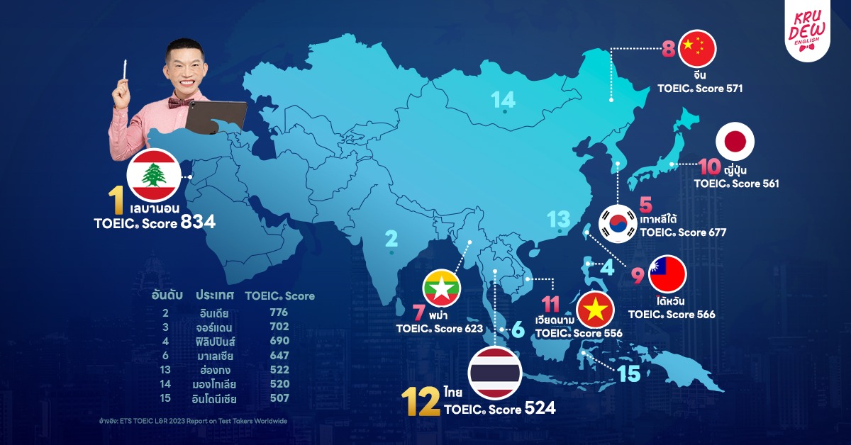 ส่องคะแนนเฉลี่ย TOEIC ทั่วทวีปเอเชีย ไทยรั้งท้ายที่ 12 จาก 15 อันดับ ต้นเหตุเพราะอะไร?