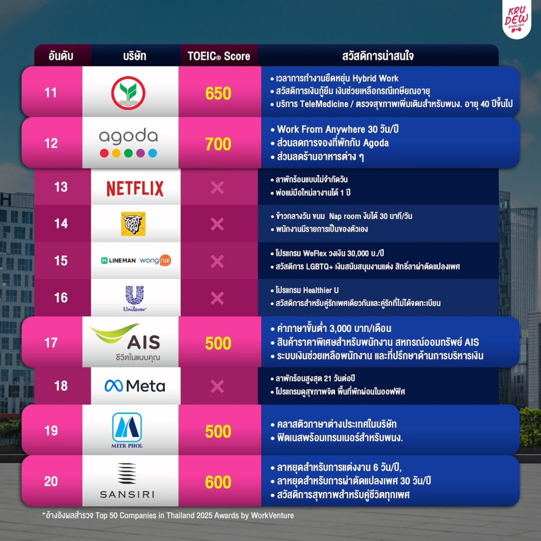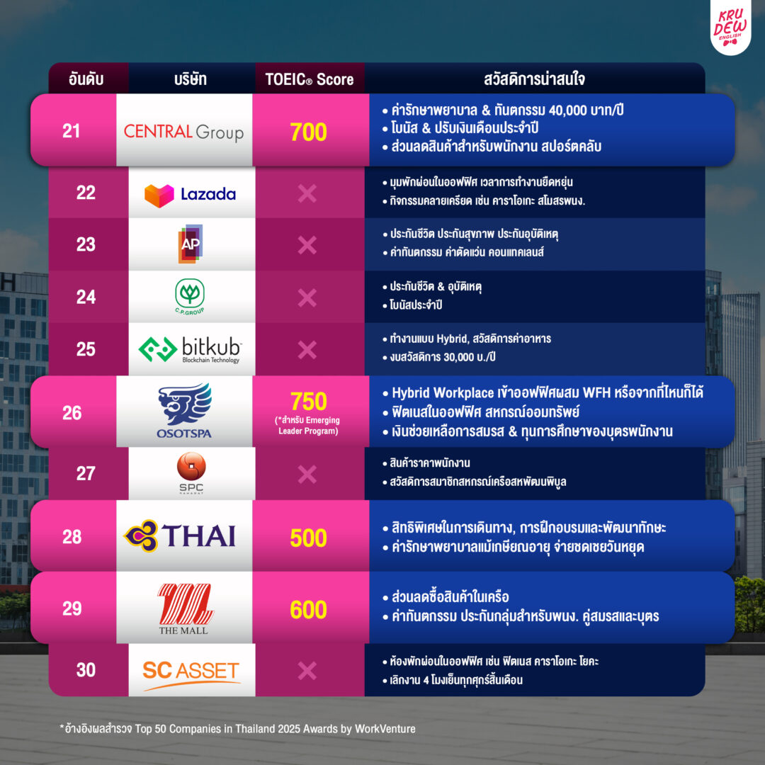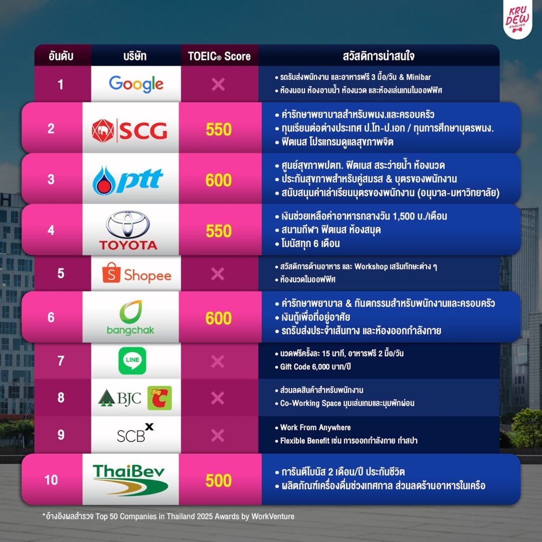 อ้างอิงผลสำรวจ: Top 50 Companies in Thailand 2025 by WorkVenture