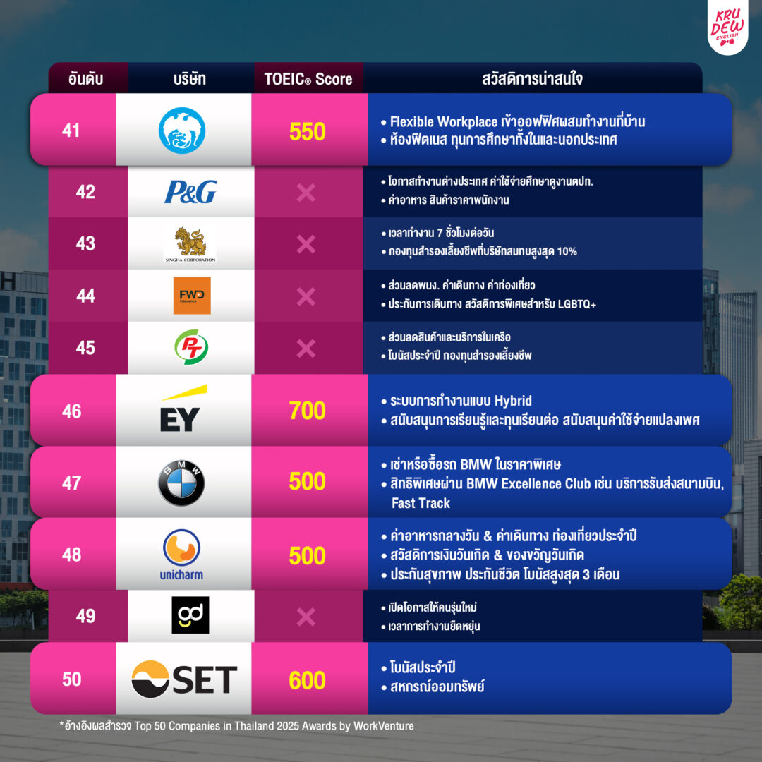พร้อมแจก “ลิสต์ 50 บริษัท และคะแนน TOEIC® ที่ต้องมี” ประจำปี 2025