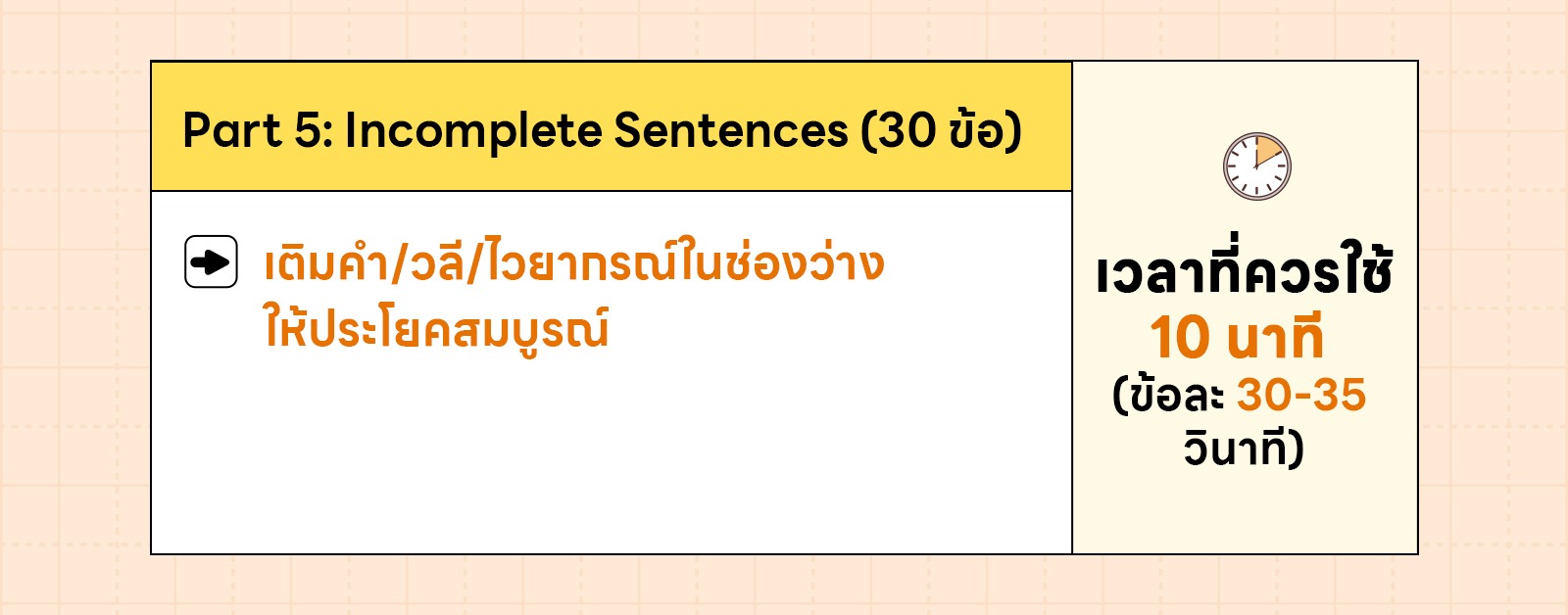 Part 5 – Incomplete Sentences (30 ข้อ)