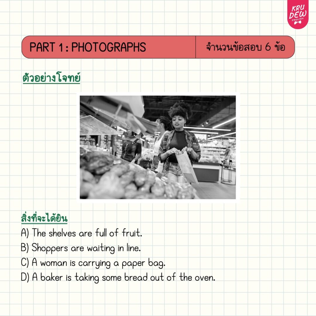 ⁕ มองรูปให้ดี หากมีคนอยู่ในภาพให้สังเกตแอคชันหลัก และฟังให้จบก่อนค่อยตอบ